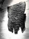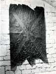 le relief sont couverts de plusieurs couches de peinture noire, rouge,